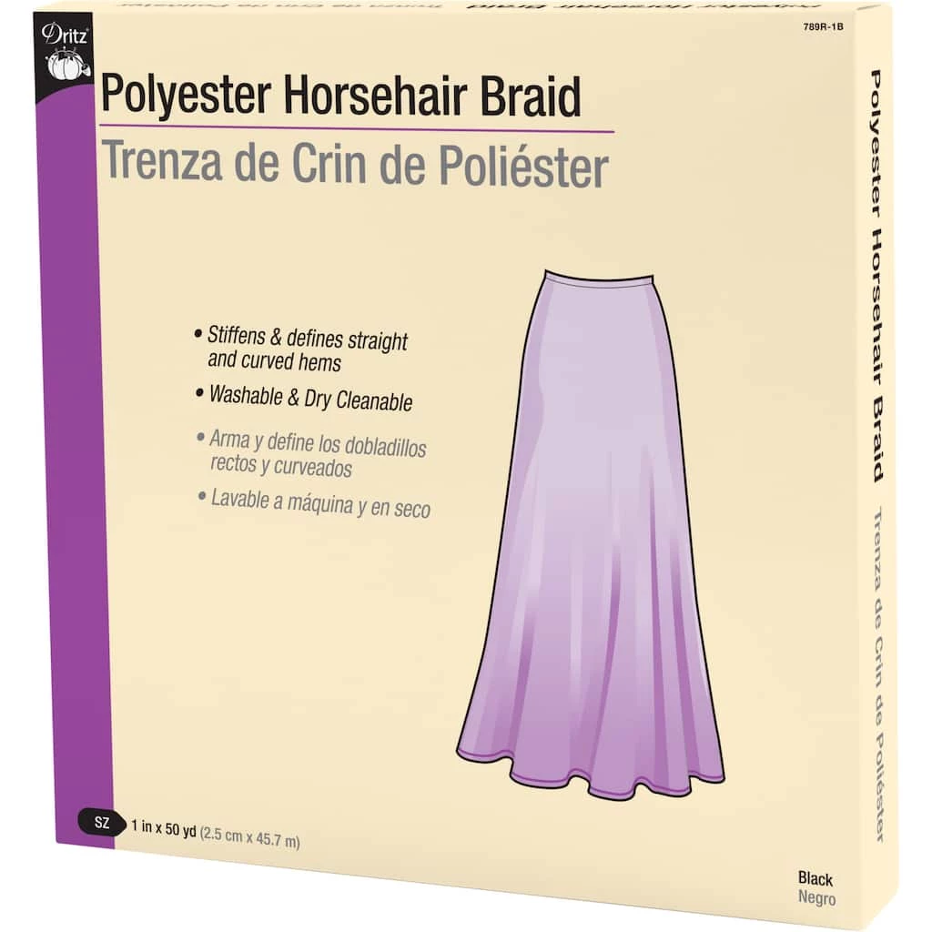 Use the Dritz 1” Polyester Horsehair Braid to add body to your floor-length skirts, gowns and other dresses without adding weight to the hem. The 1″ wide polyester horsehair braid which can stiffen and define straight or curved hems. Made of 100% polyester, this horsehair braid is washable and dry cleanable.