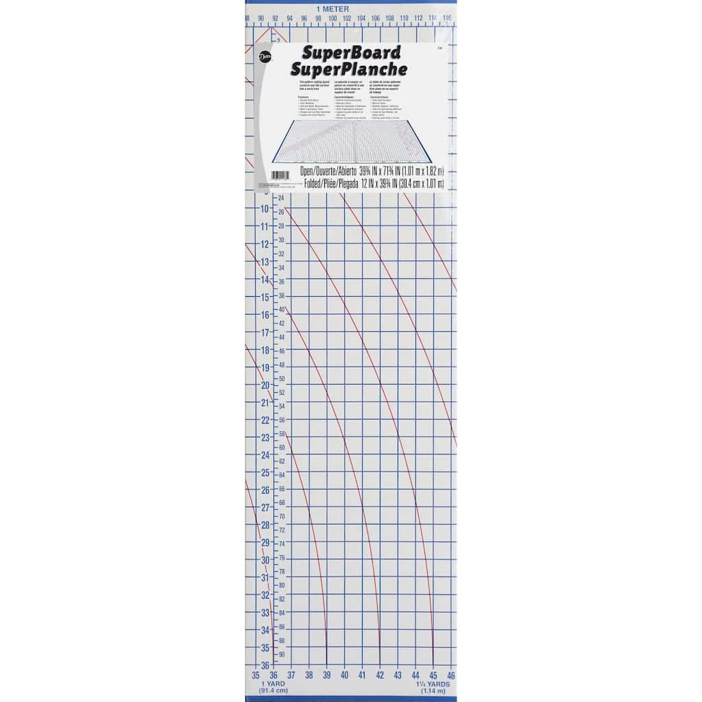 If you are looking for a spacious working surface for cutting fabrics and other craft and home decorating projects, the Open Folded Superboard is a smart choice. It has a sturdy Kraft board construction with a neat laminated finish. For added convenience, this superboard features markings in both directions and lines for cutting nine widths of bias strips and patterns for scallops and circles.