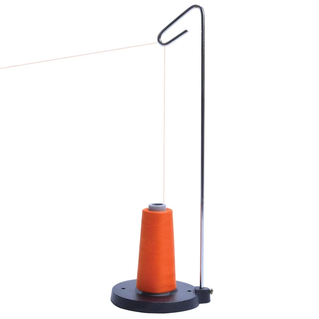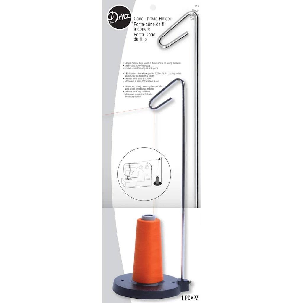 Use the Dritz Cone Thread Holder to hold larger spools of thread, allowing them to be used with a sewing machine. This thread holder features a sturdy metal base with a metal thread guide and spindle. Use the holder to unwind thread easily and avoid tangled messes. This package includes a metal base, metal spool, metal thread holder and instructions.