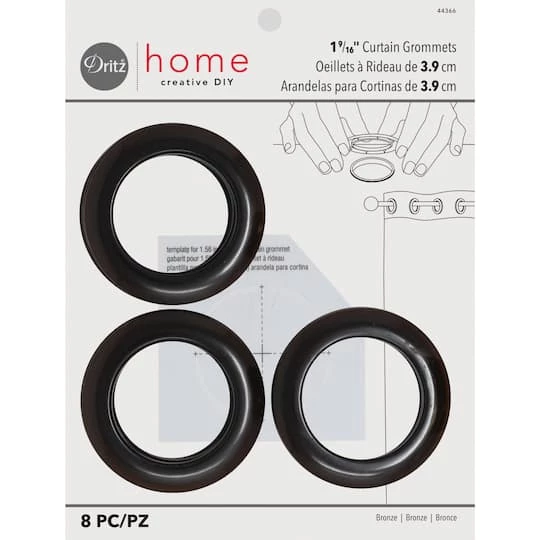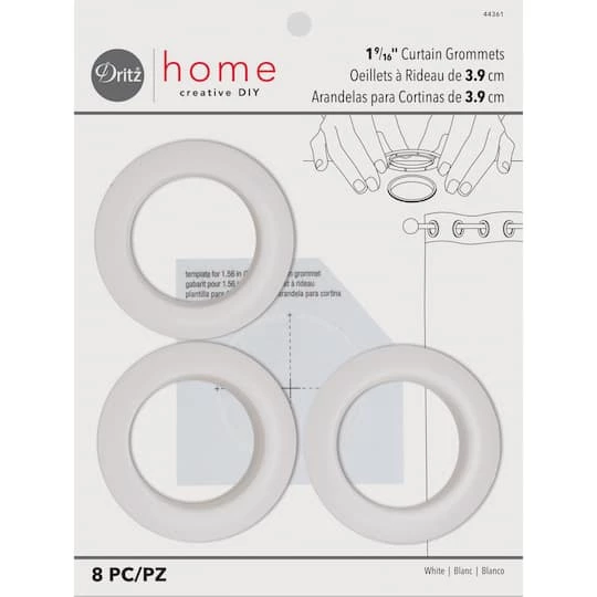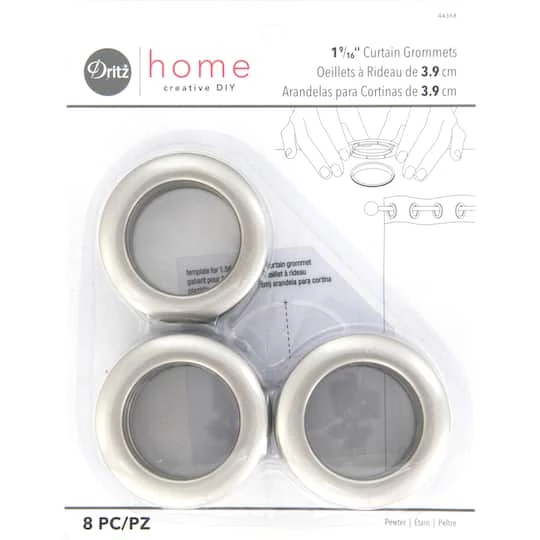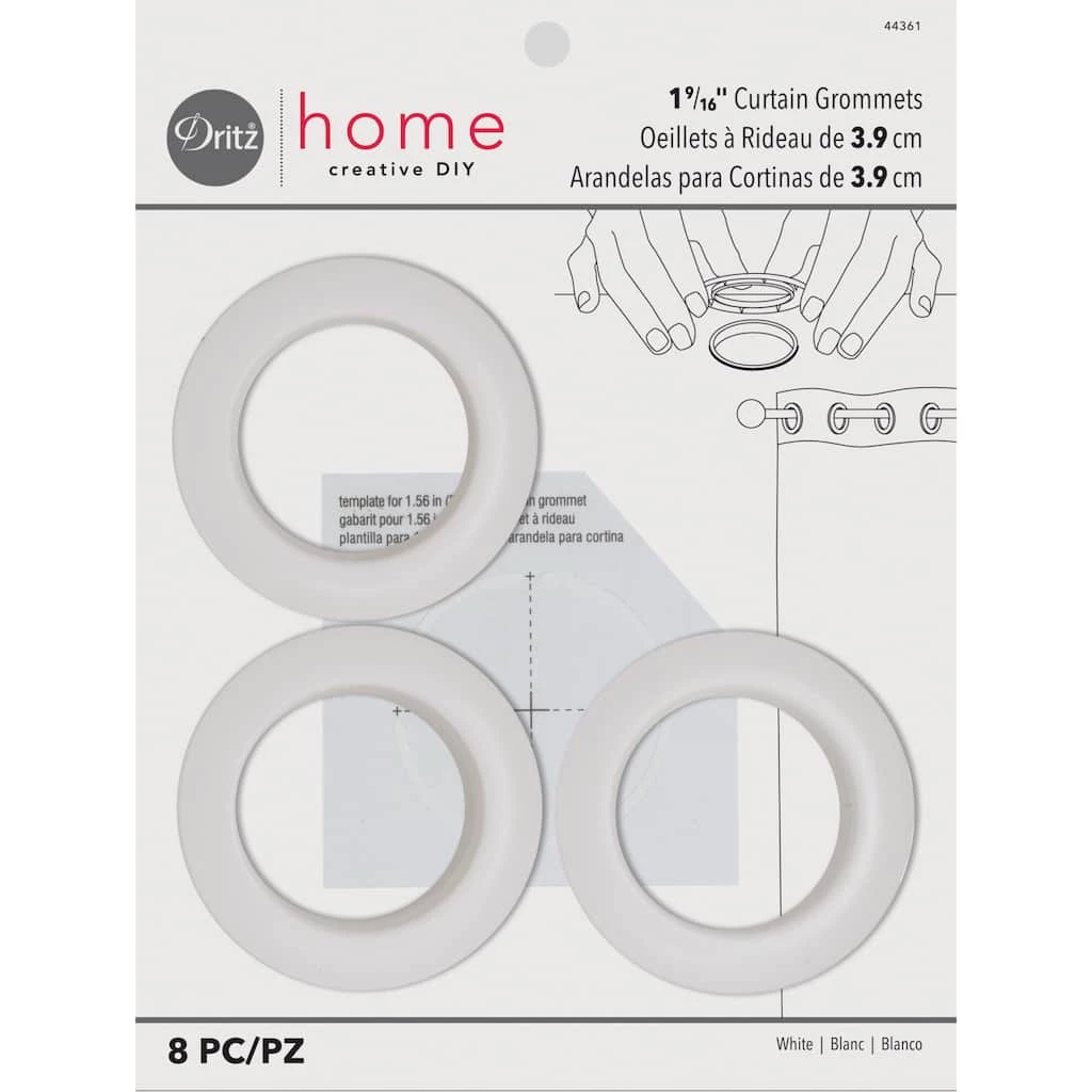Use Dritz Home curtain grommets to transform a piece of fabric into a curtain panel. Easy to install, these grommets create a series of openings to insert a curtain rod through and allows your panel to hang.