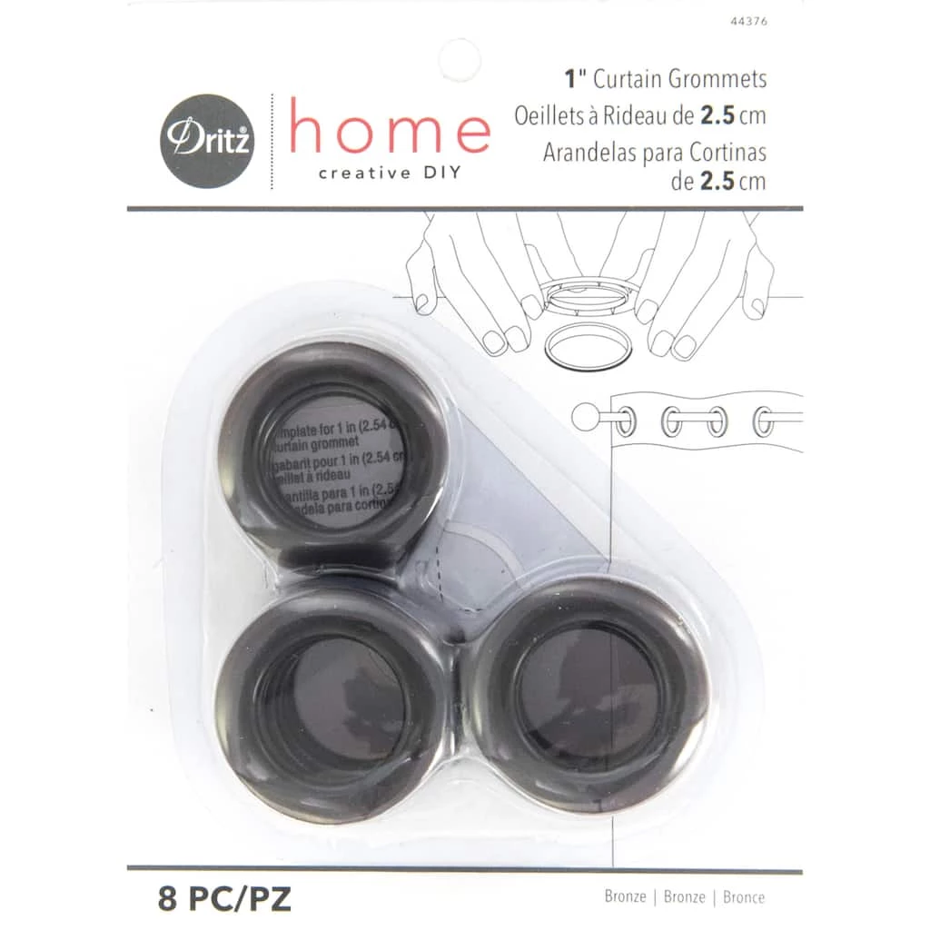 Use Dritz Home curtain grommets to transform a piece of fabric into a curtain panel. Easy to install, these grommets create a series of openings to insert a curtain rod through and allows your panel to hang.