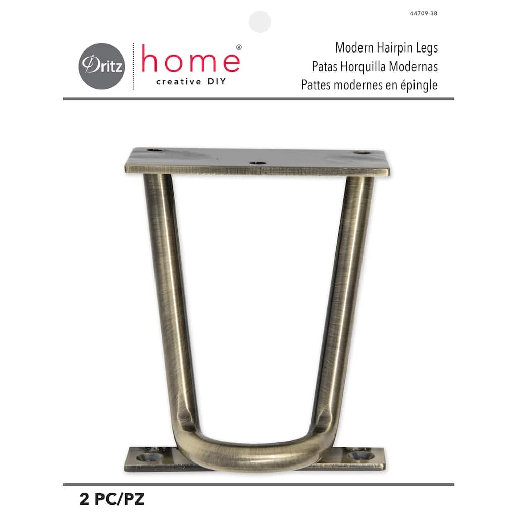 Dritz Home hairpin metal legs are decorative and functional legs that can be applied to a variety of furniture pieces and accessories using screws (not included). Metal legs are used by woodworkers, decorators and DIY enthusiasts. They can be installed in handcrafted or new custom pieces, or used to refresh out-of-date pieces. Common uses for metal legs are ottomans, benches, shelves, occasional tables, chest of drawers and more.