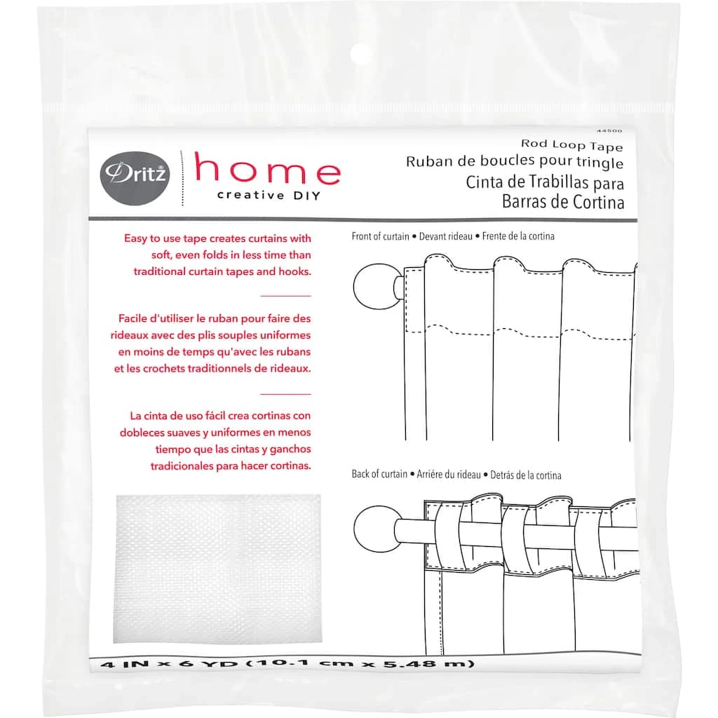Make soft and even folds for your curtains with the Dritz Home Rod Loop Tape. This rod loop tape has hidden loops attached to it and is easy and hassle free to use. It can be used both for fashionable round curtain rods and flat ones. Simply sew it on to the back of the curtain header and pass the rod through the loops, to give your curtains a seamless finish.