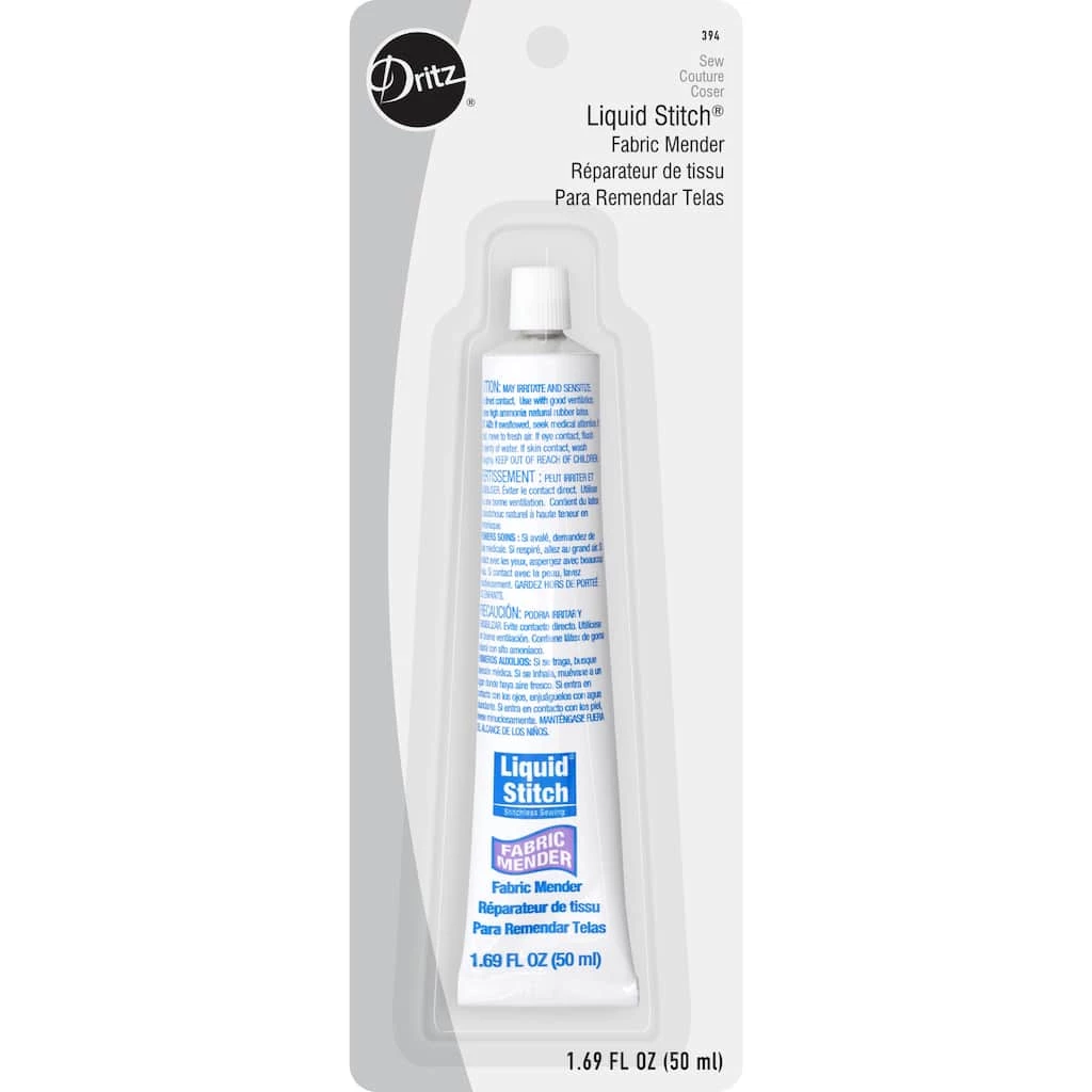 Dritz Liquid Stitch Fabric Mender is a perfect choice to mend holes, rips, tears on all kinds of fabric. This handy liquid stitch glue works like a charm and dries in a jiffy. The fabric mender tube is compact in size so you can carry it in your hand bag when you are on-the-go. Use this washable liquid stitch fabric mender adhesive to seal buttons, secure hems, patch lace or apply dainty sequins as well.