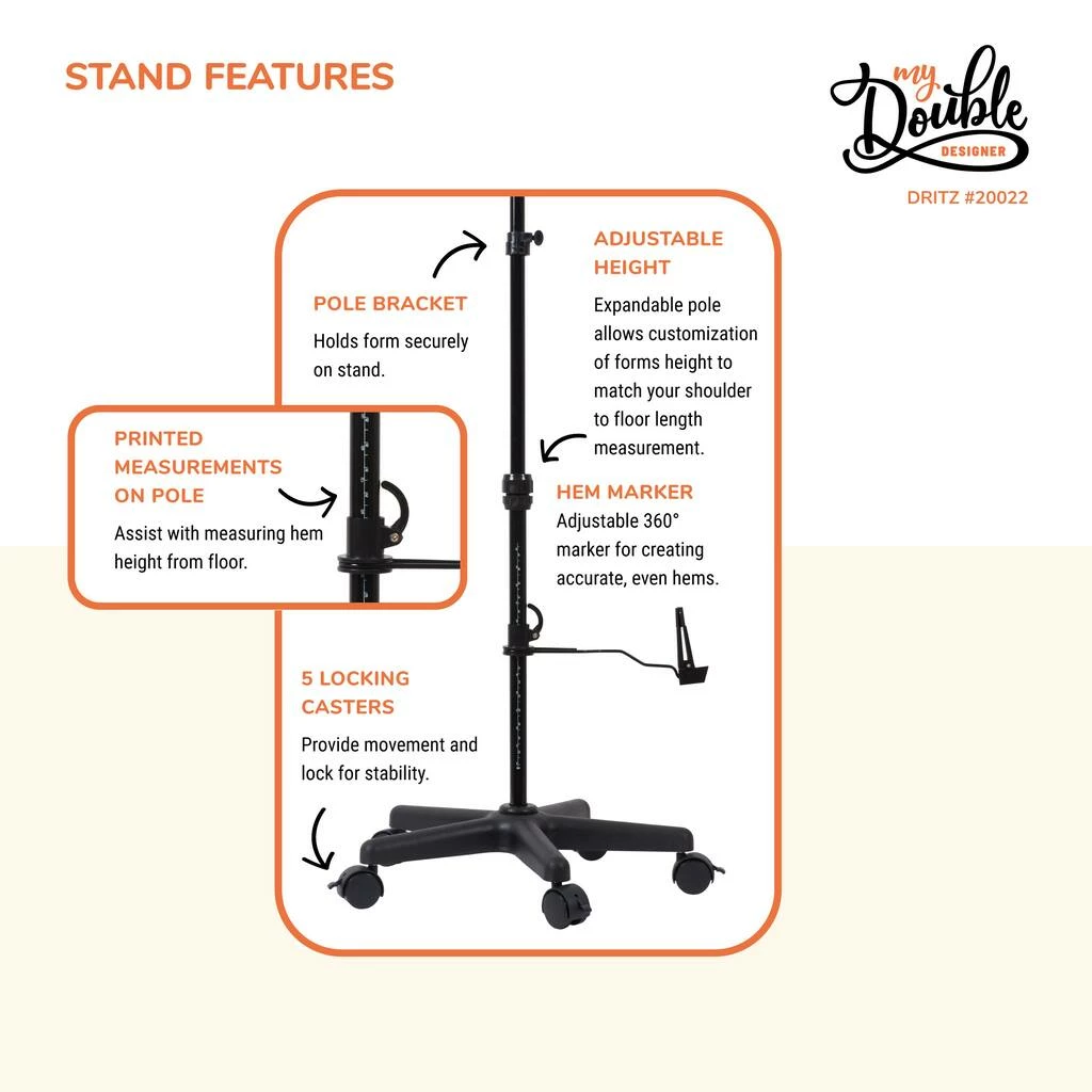 - Additional features: built-in pin cushion for easy pin access and storage; printed pole measurements and an adjustable 360 pin hem marker help create accurate, even hems; full color step-by-step instructions