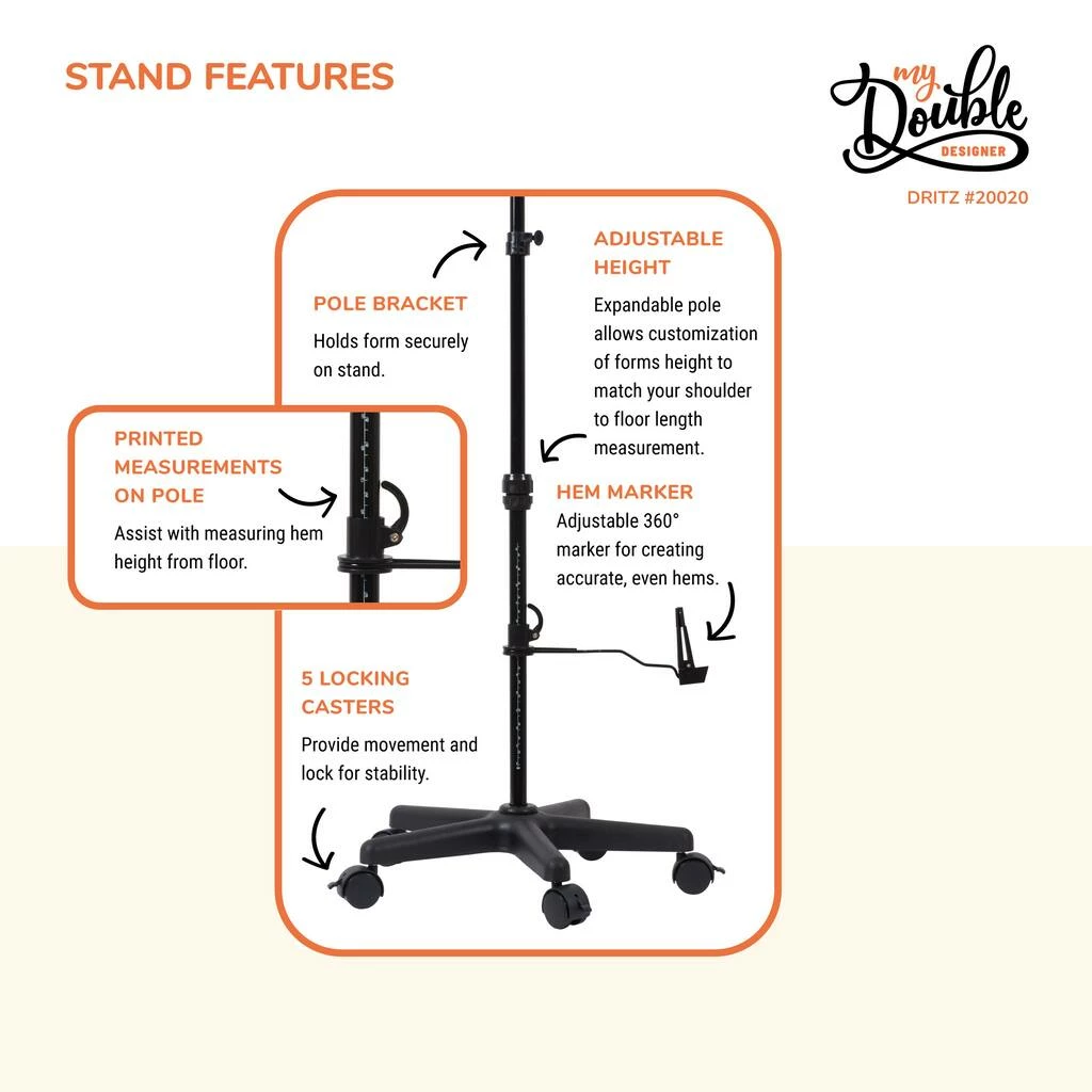 This dress form helps you fashion a double of your body providing you with professional looking garments. Use the form to audition fabrics and test the drape and overall look and feel before you start your project. The form is ideal for checking the fit of your pattern tissues and garment test muslin. The form assists with modifications and alterations to both new construction and ready-to-wear clothing that requires modifications.