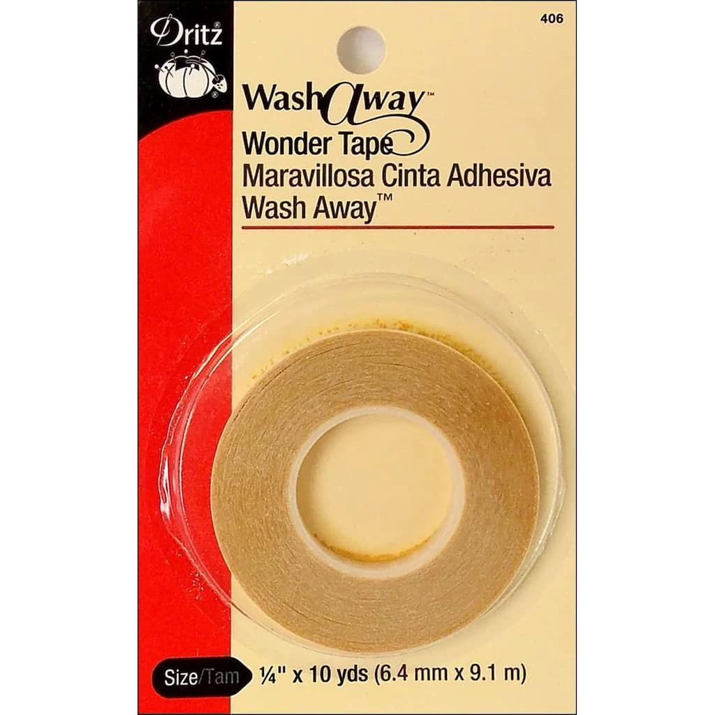 Wash Away Wonder Tape is a double sided, transparent tape that disappears after the first washing. It can be sewn through with out gumming up your needle. This tape is perfect for holding together seams or hems before stitching. Store in a cool, dry place.