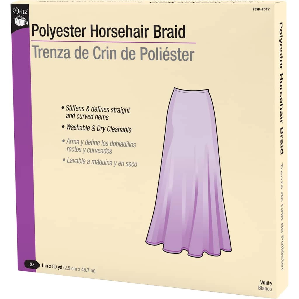 Use the Dritz 1” Polyester Horsehair Braid to add body to your floor-length skirts, gowns and other dresses without adding weight to the hem. The 1″ wide polyester horsehair braid which can stiffen and define straight or curved hems. Made of 100% polyester, this horsehair braid is washable and dry cleanable.