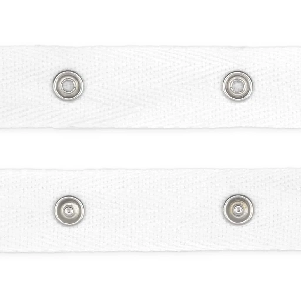 Create charming baby and toddler outfits using the Dritz white cotton tape with metal snaps. These washable metal snaps are spaced at regular intervals on a pure white cotton tape. They are easy to sew and lay well across fabrics. You can also use these tapes to create pillow covers, slipcovers, totes, trims for jackets, shoes and other home dรฉcor accessories.